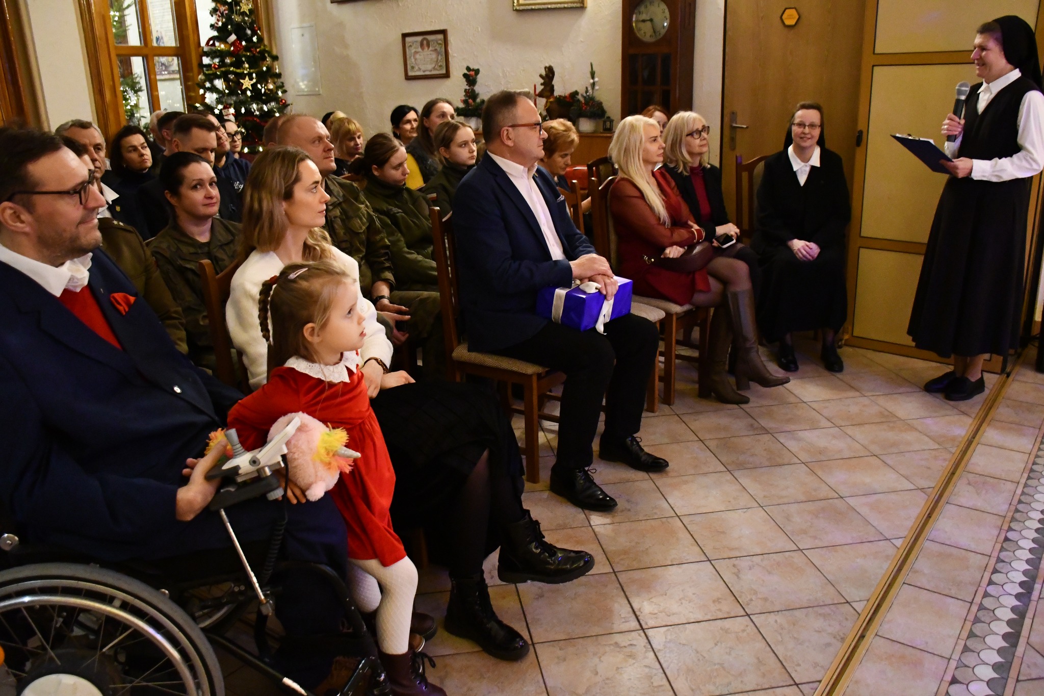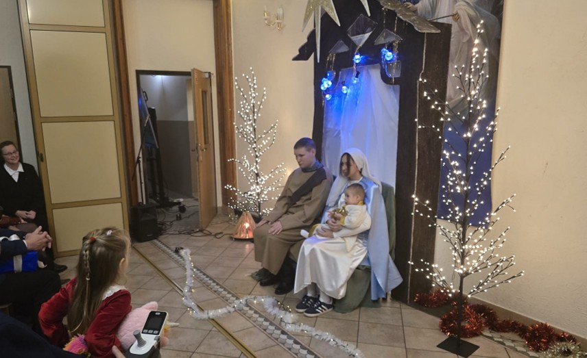 Jednak najważniejszym punktem spotkania były jasełka przygotowane przez wychowanków placówki. Przy wsparciu sióstr, opiekunów oraz instruktora muzycznego chłopcy w poruszający sposób przedstawili historię Narodzenia Pańskiego, a wspólne kolędowanie stworzyło ciepłą i pełną wzruszeń atmosferę.
